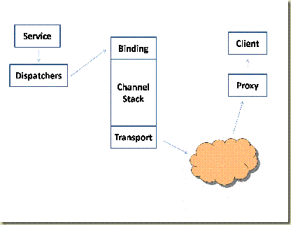 As you can see from the diagram there are a lot of pieces of functionality between your service code and the client. In actuality the client side of the stack also consists of dispatchers, at least one binding, a channel stack and a transport as well. To keep this diagram simple I've aggregated those down to the proxy object that developers use everyday with WCF but keep in mind that these things exist on the client side and the ability to customize WCF extends to that side as well (There are a few things you have to keep in mind with that, more in another post)